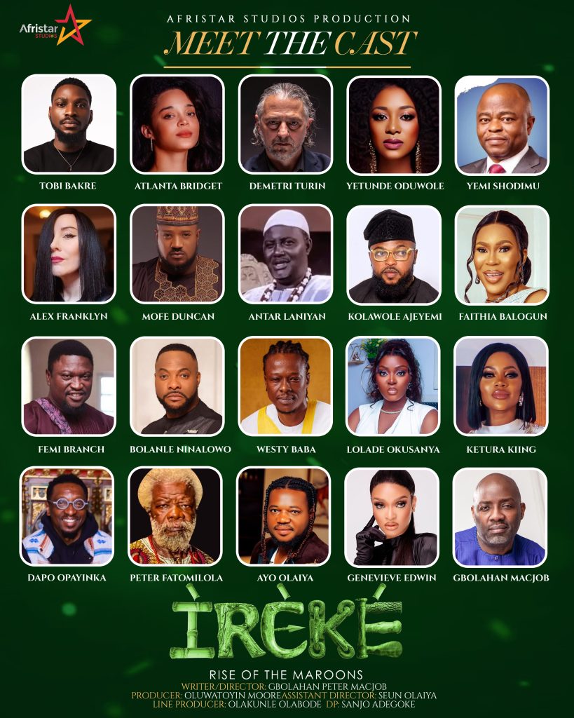 Written and directed by Emmy-nominated BBC journalist Gbolahan (pronounced Bor-la-han) Peter Macjob, “Ireke” stars Tobi Bakre (“Red Circle”, “Brotherhood”, “Gangs of Lagos”) as Prince Atanda, joined by Atlanta Bridget Johnson (as Adunni), Demetri Turin (as Master Gerard), Alex Franklyn (as Lady Catherine), Kolawole Ajeyemi (as Adedeji), Antar Laniyan (as King of Ile Wura), Westy Baba (as Johnson), Genevieve Edwin (as Toro), Mofe Duncan (as Chef Okiki), Femi Branch (as Otunba Abass), Bolanle Ninalowo (as Warrior Slave) and Faithia Williams Balogun (as the Maroon Priestess).